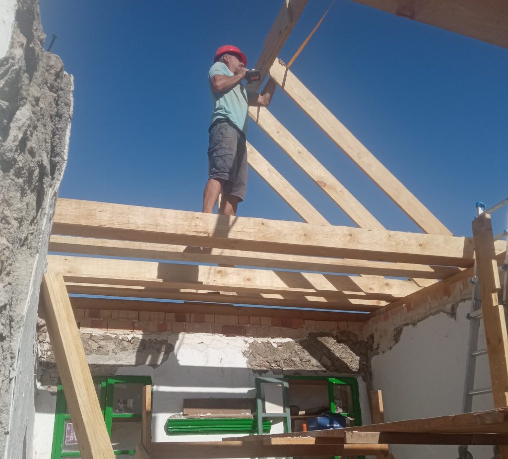 Hasta el momento, seguimos restaurando las antiguas infraestructuras con las que cuentan las parcelas, así como trabajando en nuevas estructuras necesarias para habitarlas.